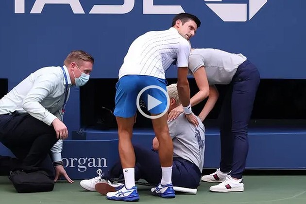 La reacción de Djokovic fue después de un break a favor del español, que provocó la reacción frustrada del serbio, quien lanzó la pelota hacia atrás y golpeó sin querer en la cabeza a la jueza de línea, que cayó inmediatamente al piso.