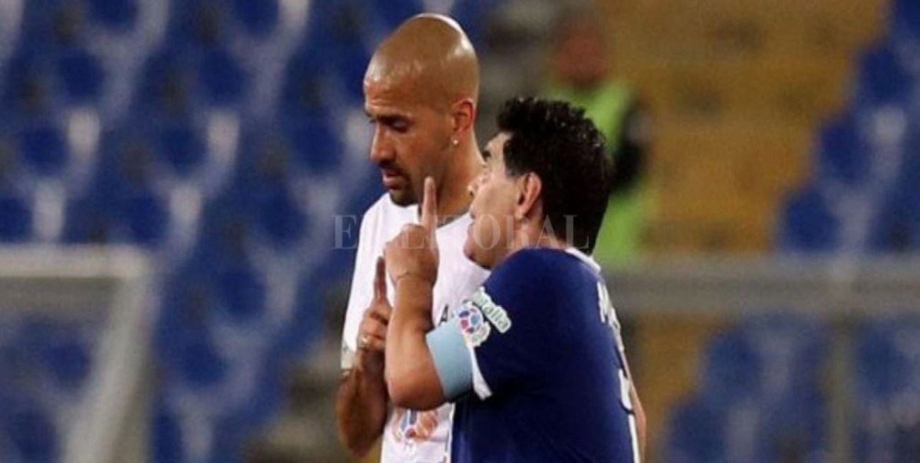 En el Mundial 2010, con Diego como DT. Allí fue cuando la relación comenzó a desgastarse, en teoría, porque Maradona dejaba en el banco a la "Bruja". Foto: Gentileza