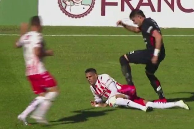 El defensor de Colón pisó a Jonatan Álvez, cunado el delantero rojibanco estaba en el suelo. El árbitro Darío Herrera revisó la jugada en el VAR y expulsó a Garcés.