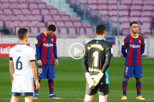 Lionel Messi, visiblemente afectado, estuvo cabizbajo durante el minuto de silencio y cuando sonó el pitido del árbitro alzó su cabeza en dirección a la pantalla del estadio Camp Nou donde se proyectaba una imagen de Maradona durante su etapa en el club "culé".