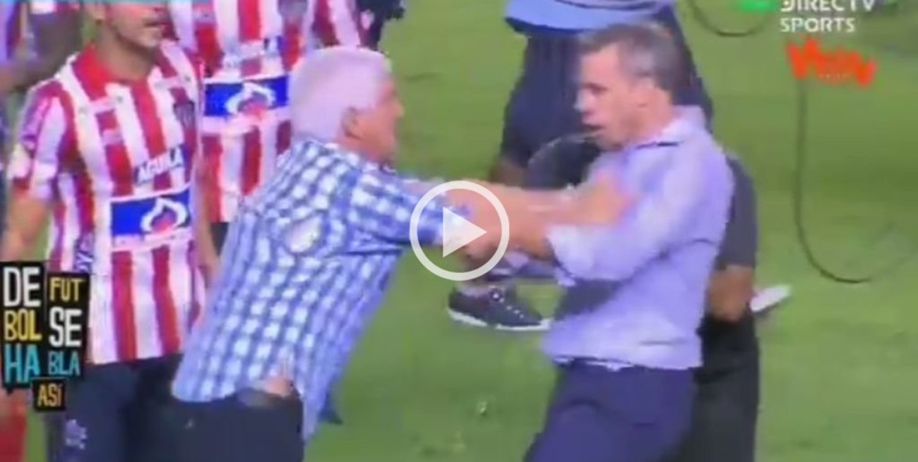 El ex entrenador de Colón, que ahora está nuevamente dirigiendo en el Junior, casi termina a las piñas con el colega argentino Lucas Pusineri, entrenador del Deportivo Cali.
