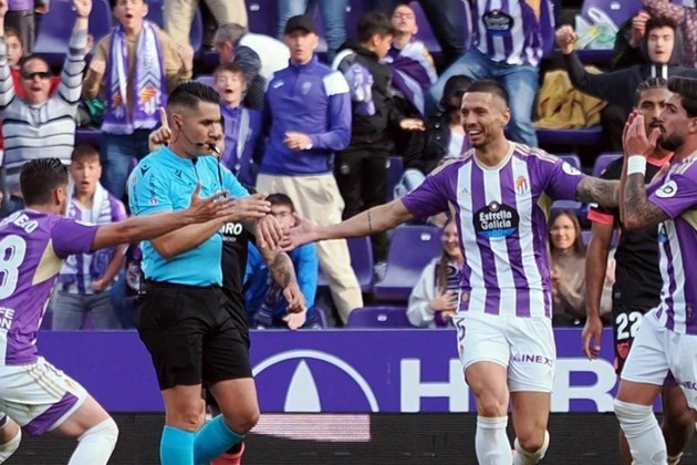 El extraño episodio desencadenó la furia de los “Pucelanos”, que se abalanzaron inmediatamente sobre el juez del partido. Se dio la expulsión de uno de los asistentes del entrenador uruguayo Paulo Pezzolano.