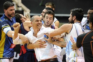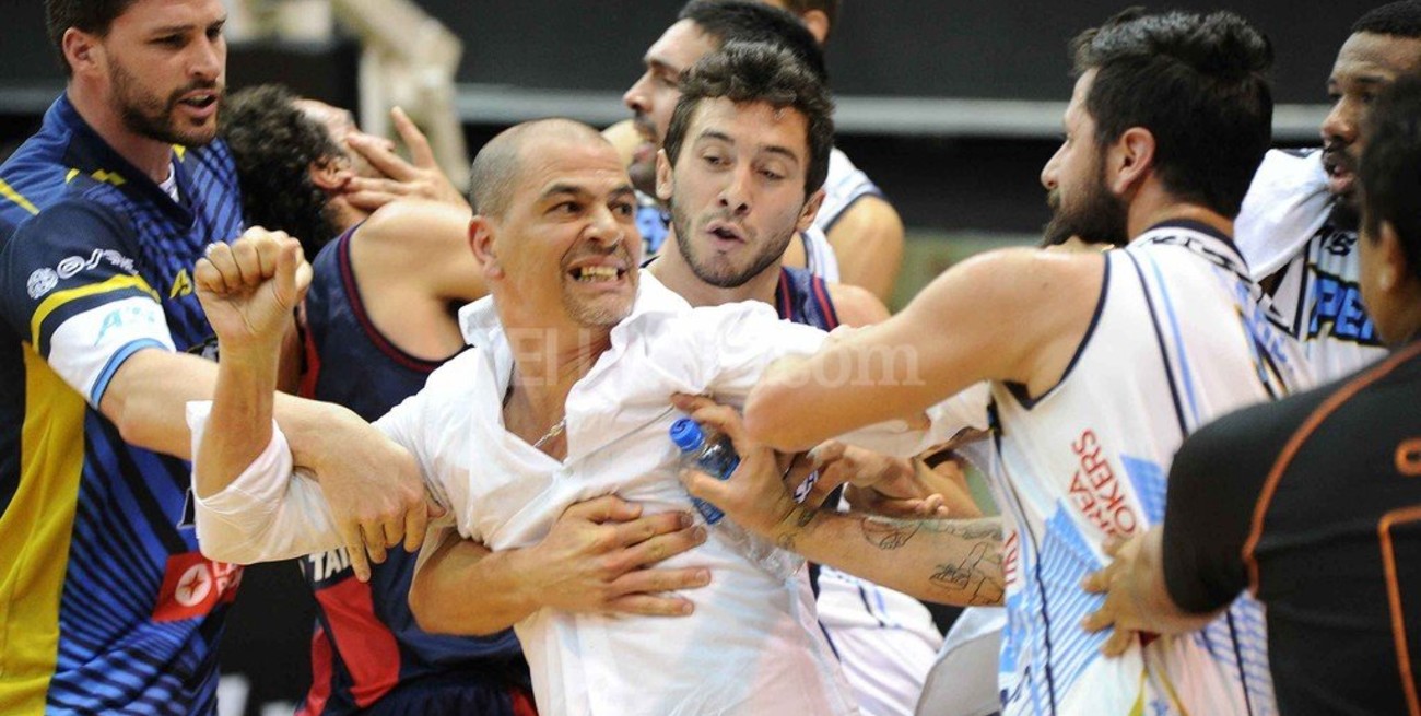Todo comenzó con un encontronazo entre Leo Gutiérrez (Peñarol) y el extranjero Roquez Johnson (San Lorenzo) que terminó con golpes de puño y empujones. Acto seguido, Sergio Hernández, técnico del equipo marplatense y de la Selección Argentina, invadió el campo de juego para intentar agredir al jugador rival.