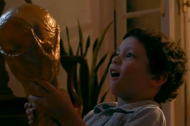El nene corre hacia ella, la abre y ahí está la Copa del Mundo, la misma que levantaron Messi y sus compañeros el domingo pasado, y al sostenerla la mira y dice: "Gracias, Papá Lionel", y la besa.