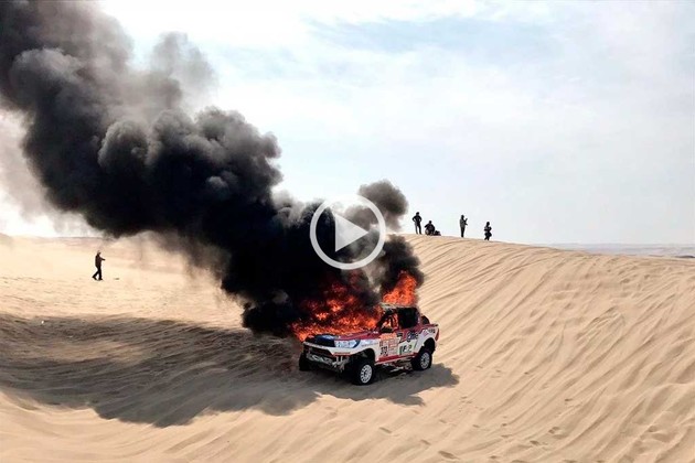 Video: se incendió una camioneta de una piloto argentina en el Dakar