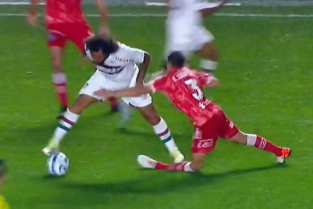 El árbitro Piero Maza frenó inmediatamente el partido y volvió a revisar varias veces la jugada con las cámaras del VAR, hasta que tomó la determinación de expulsar al experimentado defensor lateral del Fluminense, ya que interpretó que lo pisó y esto causó la torcedura del futbolista de Argentinos Juniors.