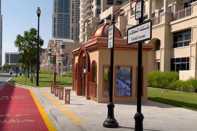Las garitas para esperar los buses son un espectáculo. Como hace mucho calor, sirve de refugio. Son cerradas, las puertas se abren automáticamente y el aire acondicionado, como en todos lados, funciona a full.