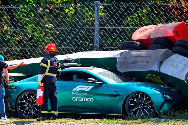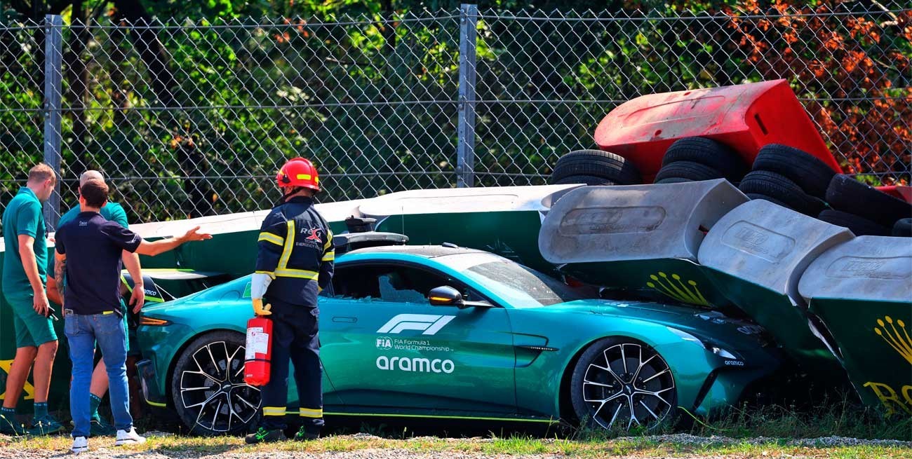 El Gran Premio de Italia en Monza sufrió un sorprendente contratiempo este jueves cuando la prueba del coche de seguridad terminó en un espectacular accidente. Bernd Maylander, piloto del Aston Martin Vantage F1 Edition, se vio involucrado en un choque dramático contra las barreras de neumáticos durante una de sus vueltas rápidas de prueba.