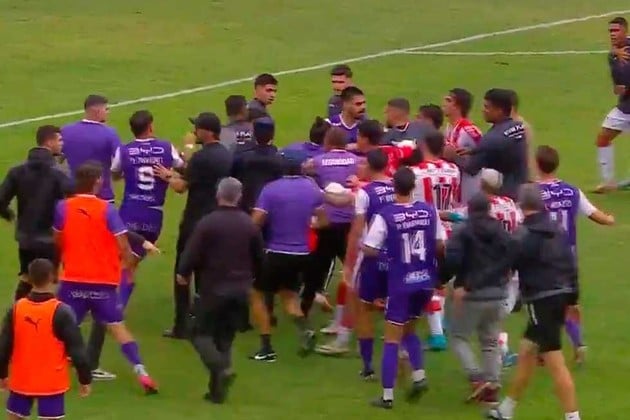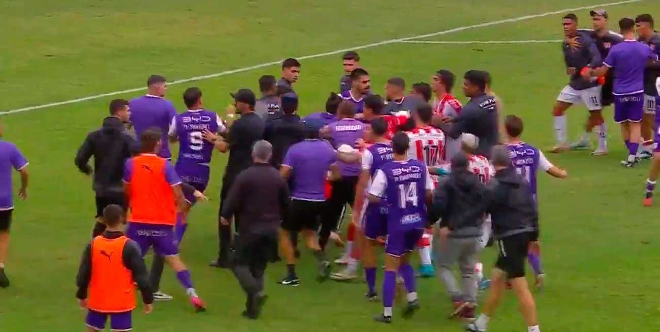 La situación se salió de control inmediatamente después del pitido final, con jugadores de ambos equipos intercambiando golpes, patadas y empujones en un caótico escenario.