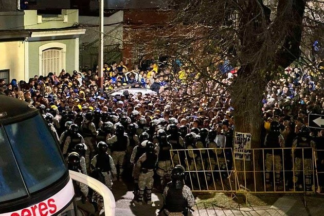 Mientras los hinchas de Boca estaban transitando las calles hacia el estadio de Nacional, varios oficiales de la Policía uruguaya montados a caballo y con escudos agredieron a los argentinos.