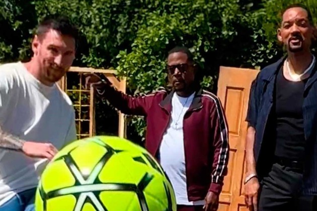 Las imágenes divulgadas lo tienen a Smith y Lawrence en situaciones similares a la película con el condimento de la presencia de Messi.
