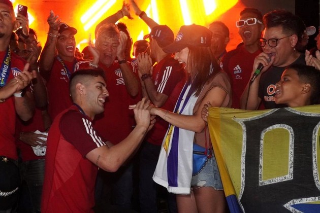Uno de los artífices de la décima estrella del Junior de Barranquilla de Colombia fue el portero uruguayo Santiago Mele, que arribó al cuadro Tiburón procedente de Unión. En medio de los festejos, el charrúa aprovechó la celebración para proponerle matrimonio a su pareja, Manuela Calvi, y todo quedó registrado.