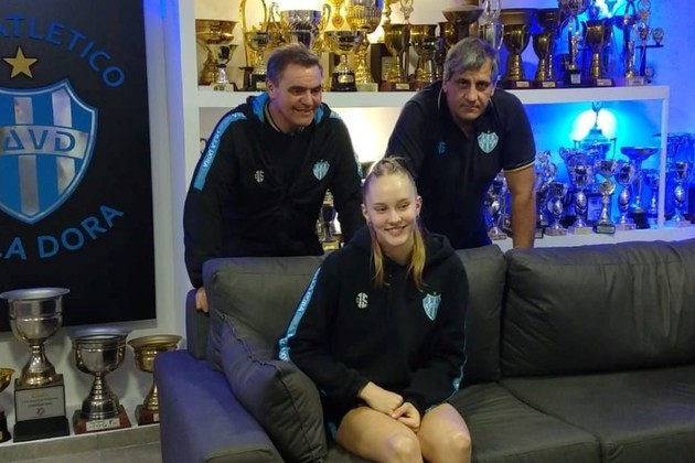 Su lugar en el mundo. Con el voley como bandera, Melany Detzel se traslada a Portugal. En esta oportunidad, acompañada por Adrián Ramseyer y Marcelo Perri, directivos del club Villa Dora.