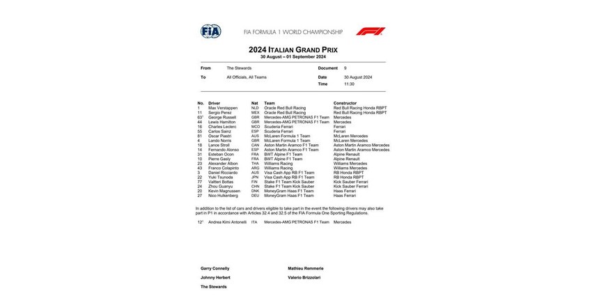 Primer entry list de la Fórmula 1 con Colapinto. Un argentino vuelve a la primera plana del automovilismo mundial.