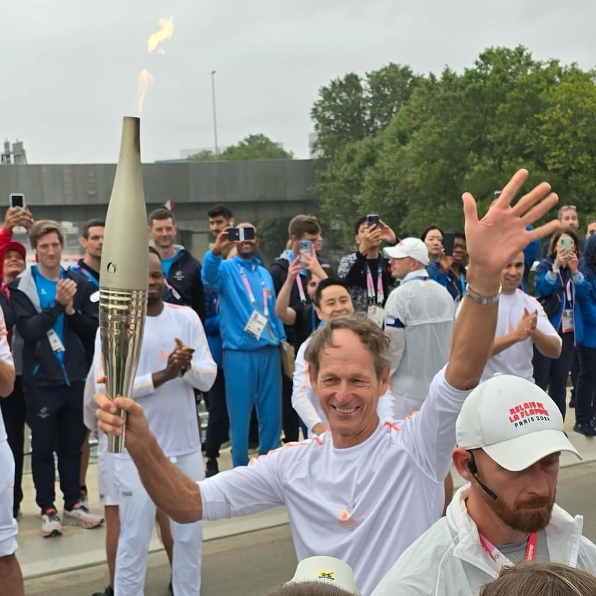 El velista argentino, medallista olímpico, portó la antorcha antes de la ceremonia en el último recorrido previo al trayecto por el río Sena.
