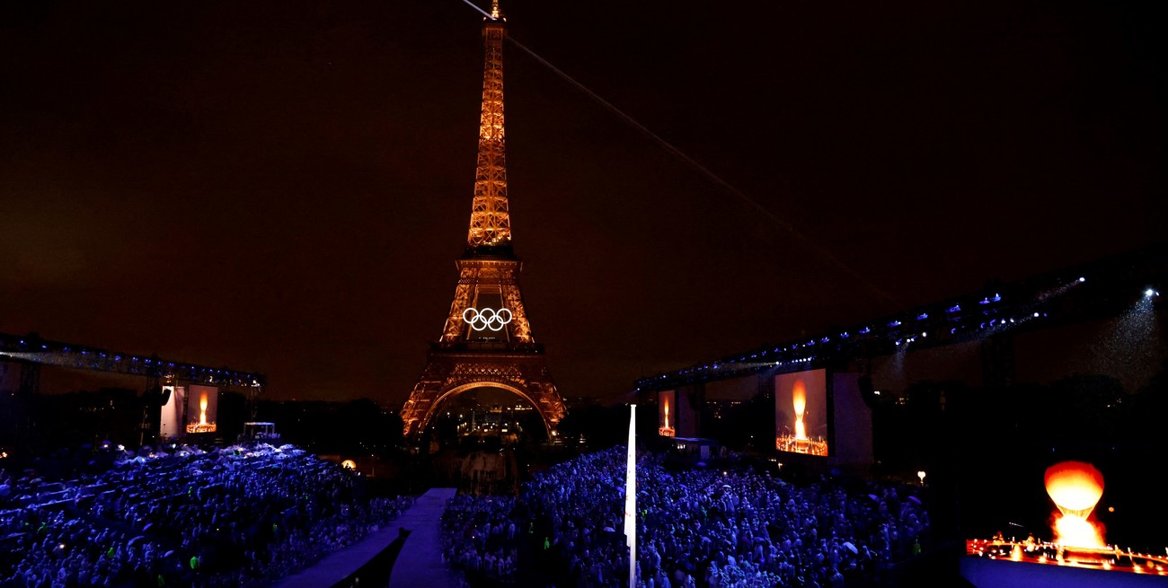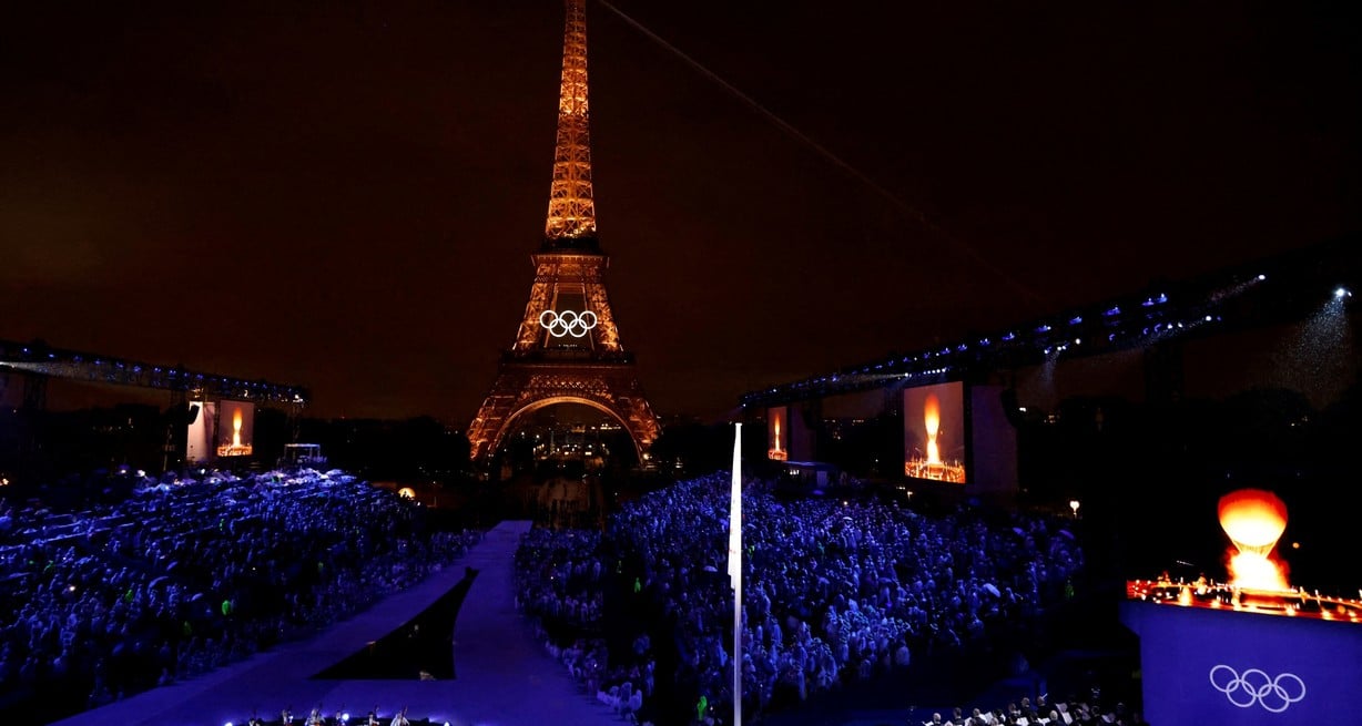 Marie-José Perec y Teddy Riner, dos atletas francesas, fueron los encargados de prender el fuego olímpico. Tras prenderlo, el pebetero, en forma de globo, tomó vuelo y se elevó en el cielo parisino.