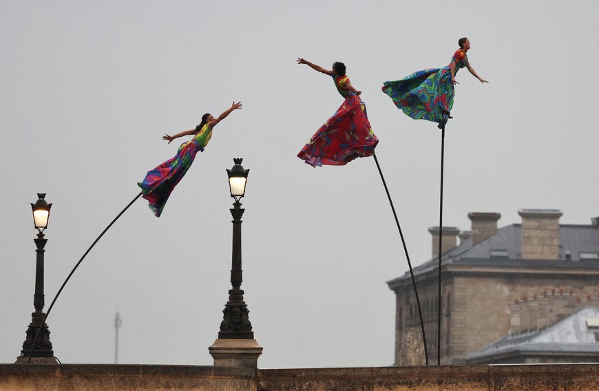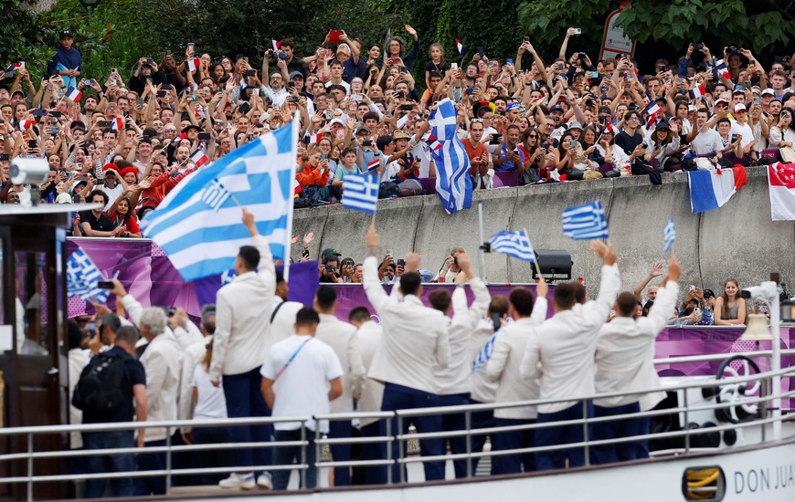Mientras se van presentando las delegaciones, sigue la acción en las orillas del río Sena, con diferentes aristas y coreografías que se van presentando.