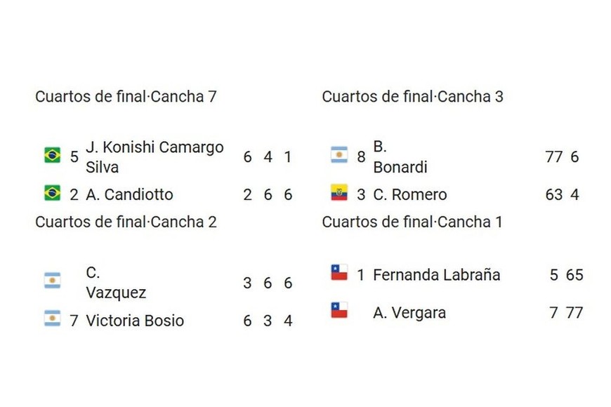 Vázquez tendrá enfrente en semifinales a la chilena Antonia Vergara Rivera que dio la gran sorpresa del día tras derrotar a su compatriota y máxima favorita, Fernanda Labraña, por 7-5 y 7-6(5).