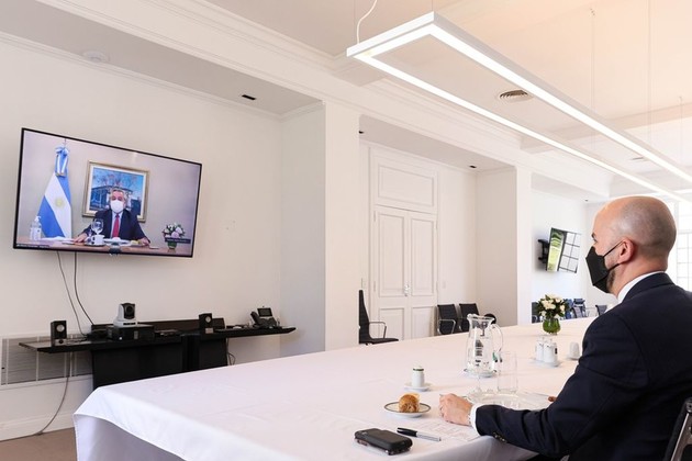 El presidente Alberto Fernández recibió esta tarde una carta de su par de los Estados Unidos, Joe Biden, que le hicieron llegar el director para el Hemisferio Occidental del Consejo de Seguridad Nacional de ese país, Juan González, y la subsecretaria interina para Asuntos del Hemisferio Occidental del Departamento de Estado, Julie Chung, con quienes mantuvo un almuerzo de forma virtual.