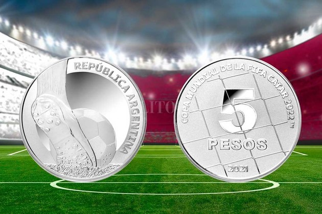 El Banco Central emitió una moneda de plata alusiva a la Copa Mundial de Fútbol que se realizará el año próximo en Qatar, con un valor facial de $ 5.