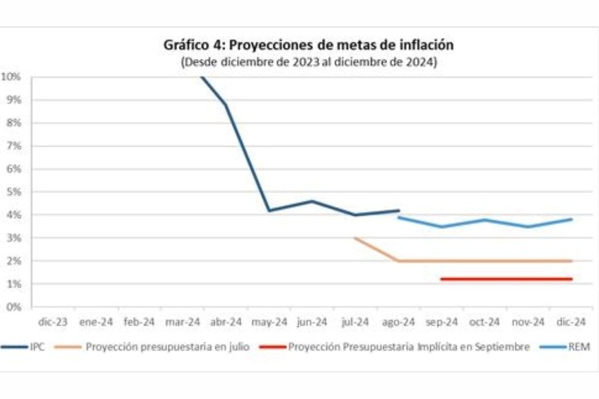 “Viniendo de 4% de inflación en junio, se estimaba un 3% de inflación para julio y del 2% a partir de agosto. Al mantenerse la tasa de inflación alrededor del 4% en julio y agosto, ahora, en el mes de septiembre, para que se puedan lograr las metas de inflación del presupuesto, la inflación debería ser de 1,2% mensual hasta diciembre y del 1,4% mensual promedio durante 2025″, analizó.