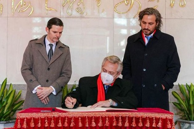 Durante la visita, se firmó el Memorándum de Entendimiento en Materia de Cooperación en el Marco de la Iniciativa de la Franja Económica de la Ruta de la Seda y la Ruta Marítima de la Seda del Siglo XXI, “siendo su objetivo reforzar la promoción de acciones y obras que fortalezcan, innoven y diversifiquen la relación económica y consoliden la conectividad entre las regiones, estableciendo de forma conjunta un marco de cooperación económica inclusivo y que contribuya al desarrollo sostenible”. Este documento fue rubricado por el canciller argentino, Santiago Cafiero, y He Lifeng, presidente de la Comisión Nacional de Desarrollo y Reforma de la República Popular China.