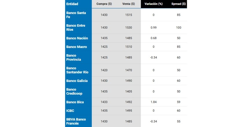 La semana pasada cerró con subas generalizadas en el dólar oficial dependiendo del banco, situación similar al Blue que avanzó. En el Nación se sostuvo a $1.485 para la venta y $1.435 para la compra, cifras en las que abre este lunes 20 de octubre.
