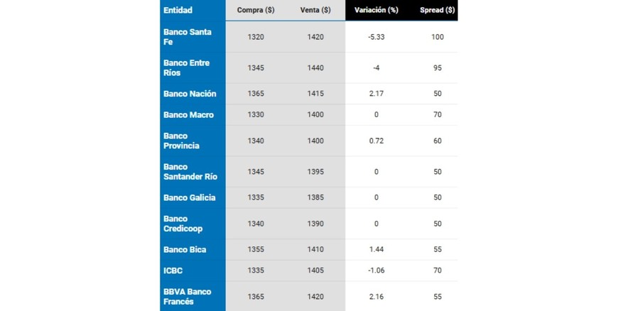 El martes cerró con leves aumentos en el dólar oficial dependiendo del banco, situación similar para el Blue. En el Nación se sostuvo a $1.385 para la venta y $1.335 para la compra, cifras en las que abre este miércoles 15 de octubre.