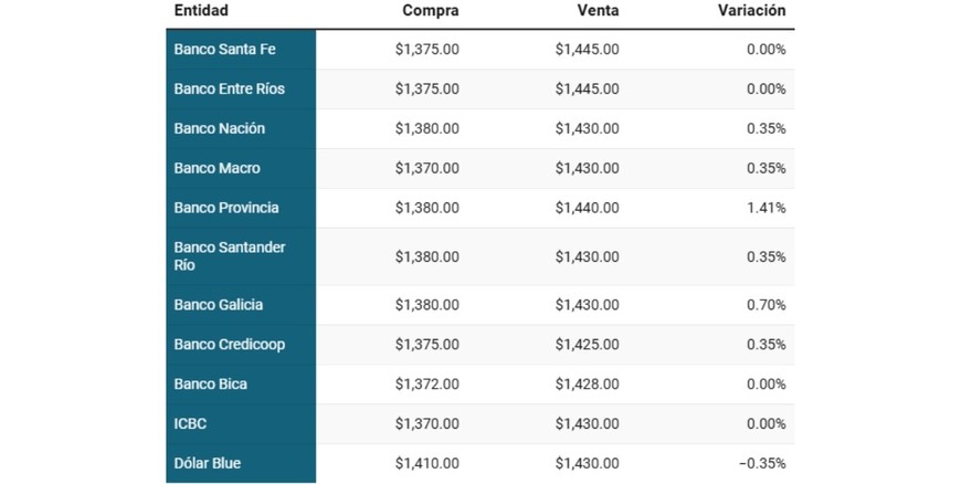 A su vez, en el promedio de los bancos para los minoristas el precio es de $ 1.380 y $ 1.430.