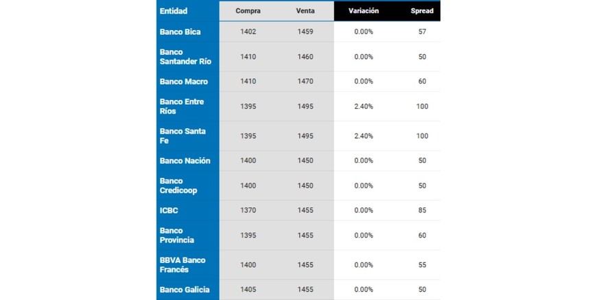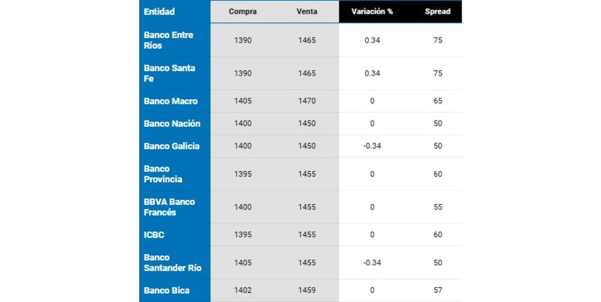 El dólar “blue” se ofrecerá a $ 1.455 y $ 1.475 para ambas cotizaciones. En tanto, el MEP lo hará en $ 1.523 y el Contado con Liquidación en $ 1.573.