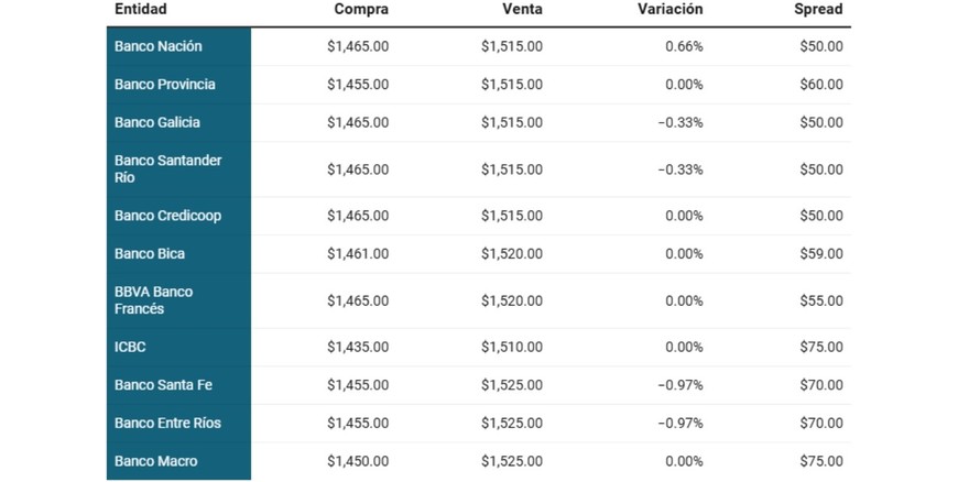 Lunes 27.1010:30 La cotización del dólar en cada banco