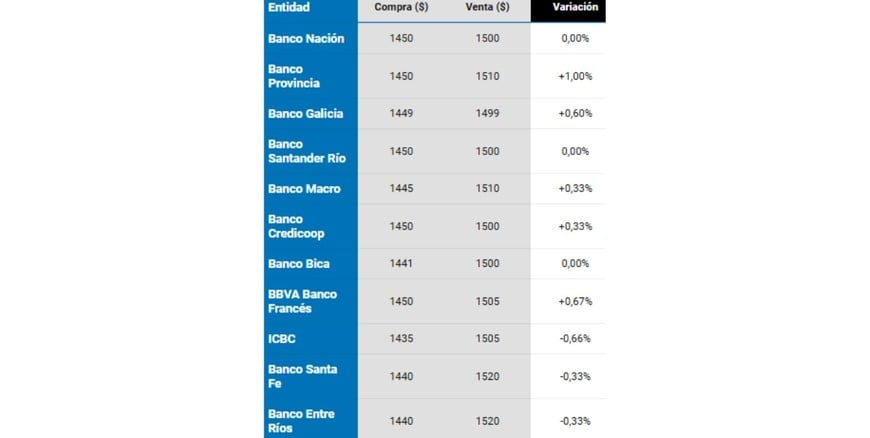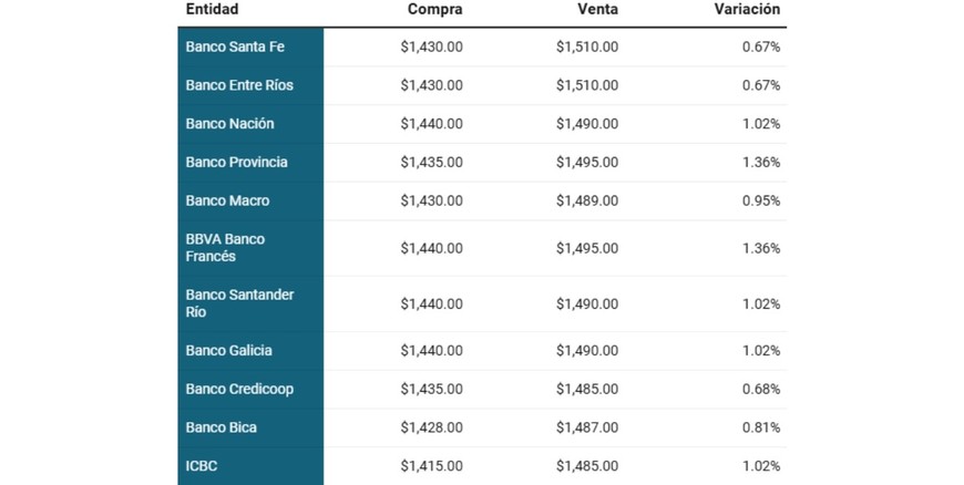 El lunes cerró con leves aumentos en el dólar oficial en la mayoría de los bancos, situación similar para el Blue. En el Nación subió a $1.490 para la venta y $1.440 para la compra, cifras en las que abre este martes 4 de noviembre.