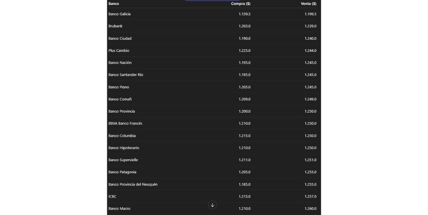 Lunes 07.0710:00 La cotización del dólar en cada banco