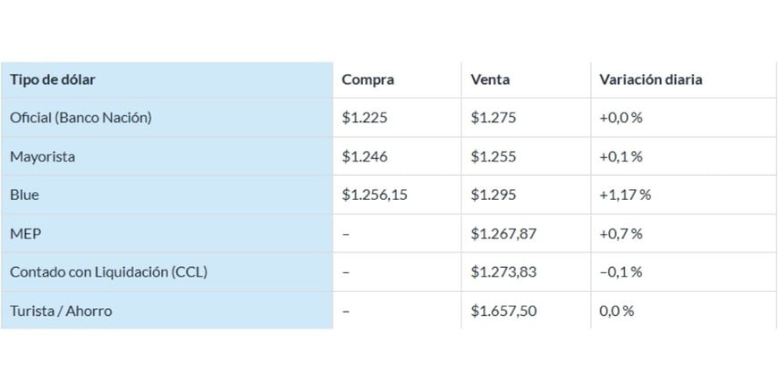 Dólar Blue: compra a $1.256,15, venta a $1.295.