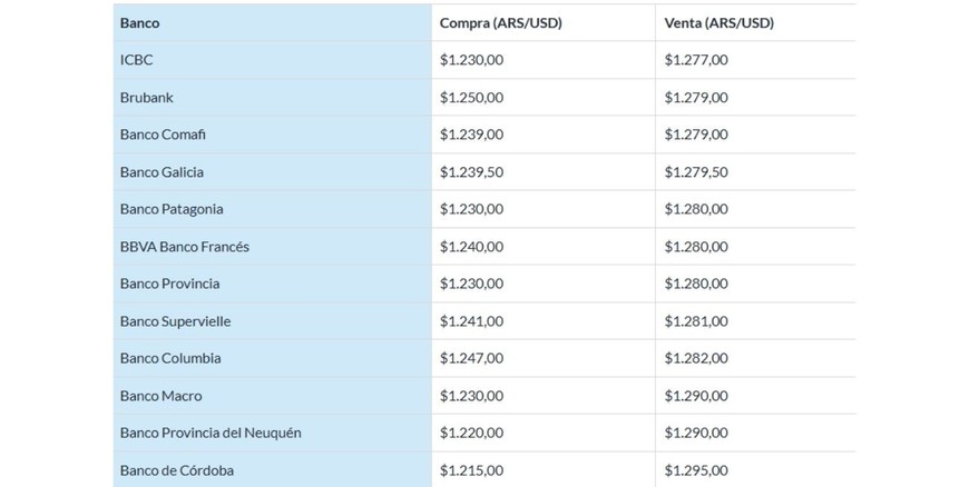 En la última rueda cambiaria, el dólar blue —que se negocia en el mercado informal— se vendió a $1290, mientras que el tipo de cambio oficial cerró en $1279,22 para la venta.