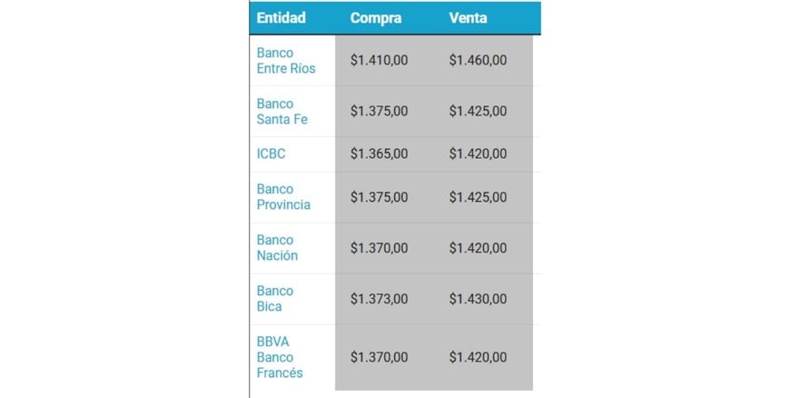 El dólar cerró con movimientos dispares: en bancos hubo subas en algunas pantallas, mientras que el blue y el MEP tuvieron bajas. El cierre en Banco Nación tuvo a la moneda extranjera en $1370 para la compra, $1420 para la venta.