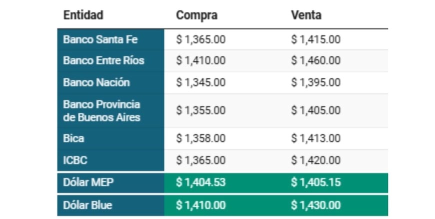 Dólar MEP: Compra: $ 1.394,70 Venta:$ 1.395,32