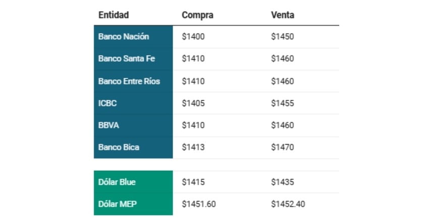 Dólar MEP: Compra: $ 1.451,02 Venta:$ 1.451,75