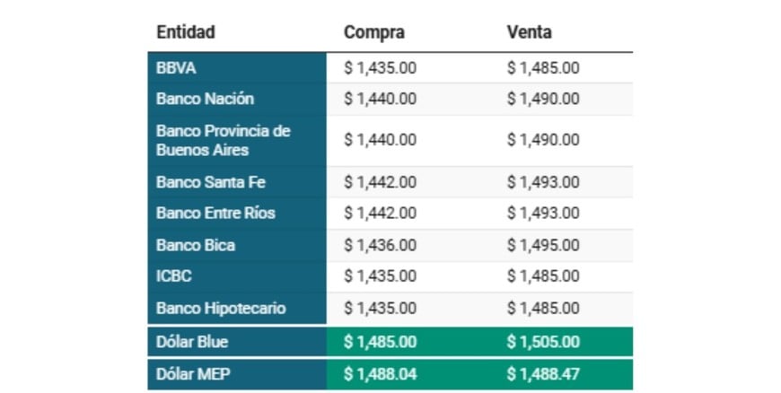 El dólar abrió la semana con mayor calma en las pizarras: bancos con pocos movimientos, blue estable y MEP en alza. La jornada volvió a transcurrir bajo el esquema de bandas cambiarias, con la expectativa puesta en cómo impacta en el objetivo oficial de acumular reservas. .El cierre en Banco Nación tuvo a la moneda extranjera en $1440 para la compra, $1490 para la venta.
