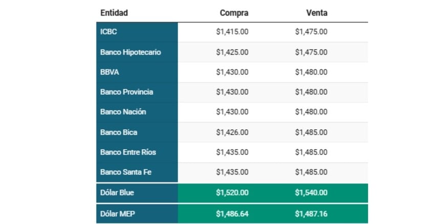 Dólar MEP: Compra: $ 1.492,37 Venta:$ 1.493,04