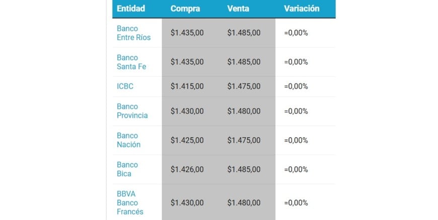 Martes 30.1210:01 La cotización del dólar en cada banco