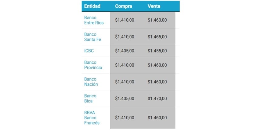 Miércoles 21.01La cotización del dólar en cada banco