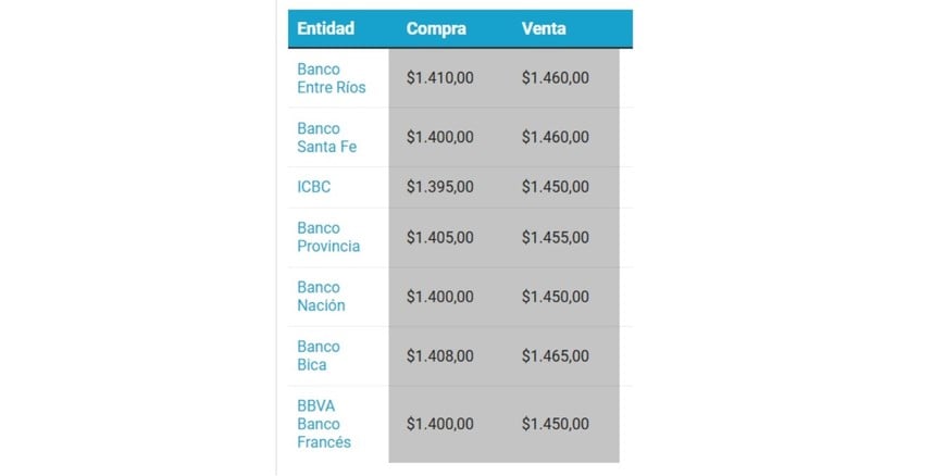 Viernes 23.0110:23 La cotización del dólar en cada banco