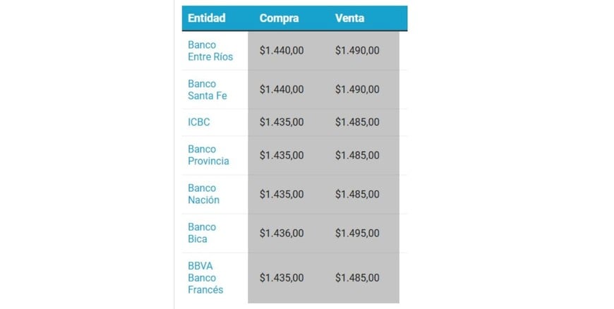 Viernes 09.0110:05 La cotización del dólar en cada banco