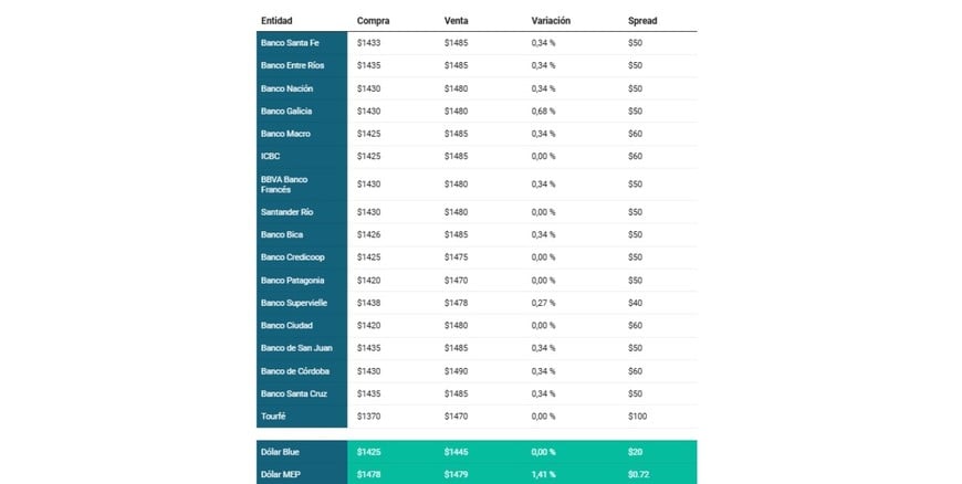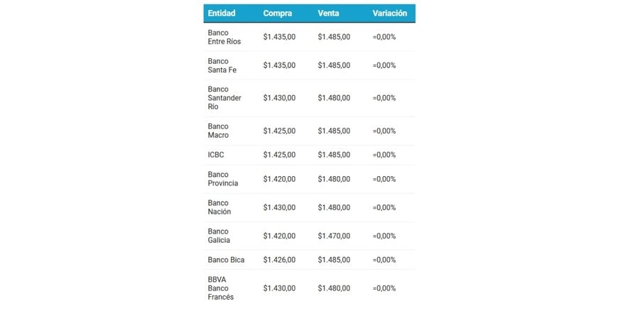 Este miércoles la cotización del dólar oficial se mantuvo sin grandes cambios. El cierre en Banco Nación tuvo a la moneda extranjera en $1430 para la compra, $1480 para la venta.