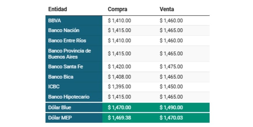 El dólar cerró con un leve repunte en casi todas las referencias: hubo subas en pizarras bancarias, mientras el blue avanzó y el MEP también terminó arriba. En el marco del esquema de bandas que rige desde enero, el mercado volvió a mirar de cerca la dinámica de precios y la señal de reservas.El cierre en Banco Nación tuvo a la moneda extranjera en $1415 para la compra, $1465 para la venta.