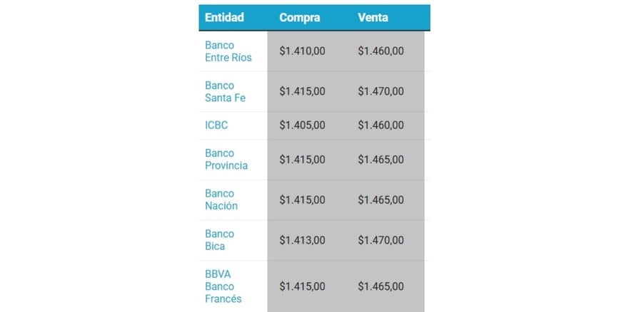 Miércoles 28.0110:24 La cotización del dólar en cada banco
