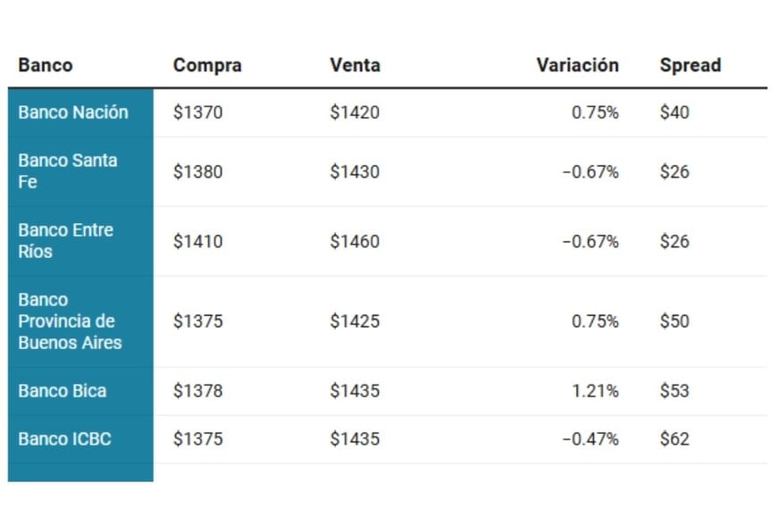 Jueves 12.0210:12 La cotización del dólar en cada banco