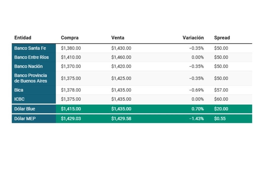 Dólar MEP: compra $1429,58 - venta $1431,84