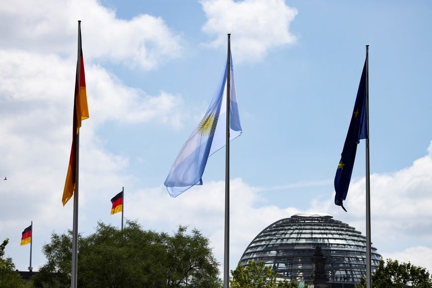 Imagen ilustrativa. Bandera Argentina junto a la de la Unión Europea. Crédito: Liesa Johannssen/Reuters